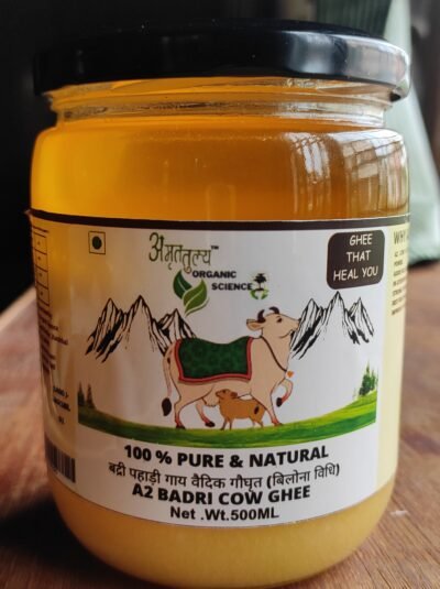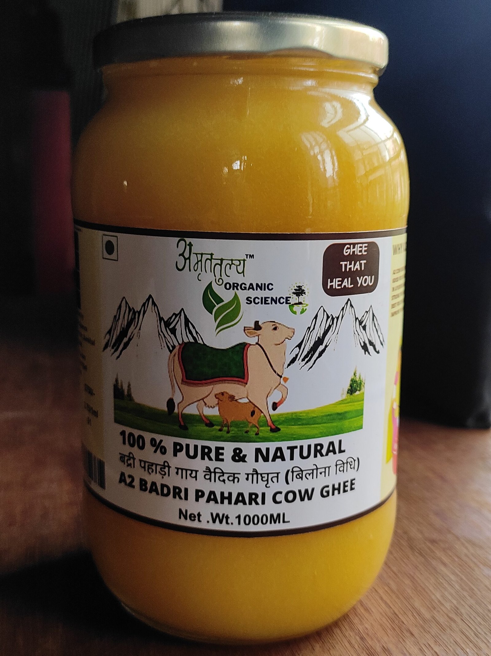 Badri is a small Indian A2 cow from Uttarakhand hills. We Prepare Ghee With Traditional Bilona method so it is full of nutritious and easy to digest. The antioxidants present in Badri cow Ghee may help support the immune system and protect against oxidative stress. Ghee is moisturizing and nourishing for the skin and hair. A2 Cow Ghee in Ayurveda Nectar for this earth.
