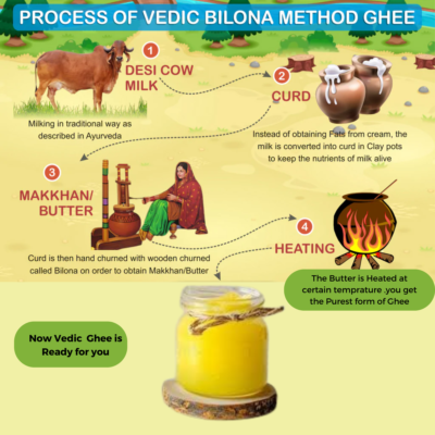 This premium A2 Bilona Ghee is free from preservatives, artificial additives, and hormones, ensuring the highest quality and purity for healthy cooking, religious offerings, and holistic wellness.