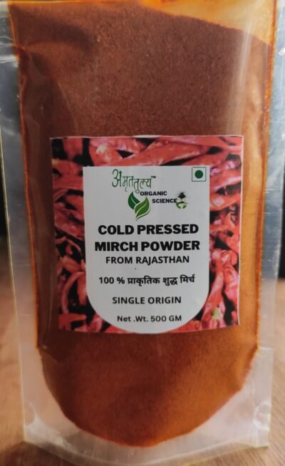 Cold Pressed Natural Red Chilli (Lal Mirch) Powder is made using handpicked, sun-dried red chillies, ground slowly using the traditional Cold Pressed method. This cold-grinding technique retains the natural color, pungency, essential oils, and heat-balanced flavor of the chillies—without burning away their nutrition or adding artificial colorants.